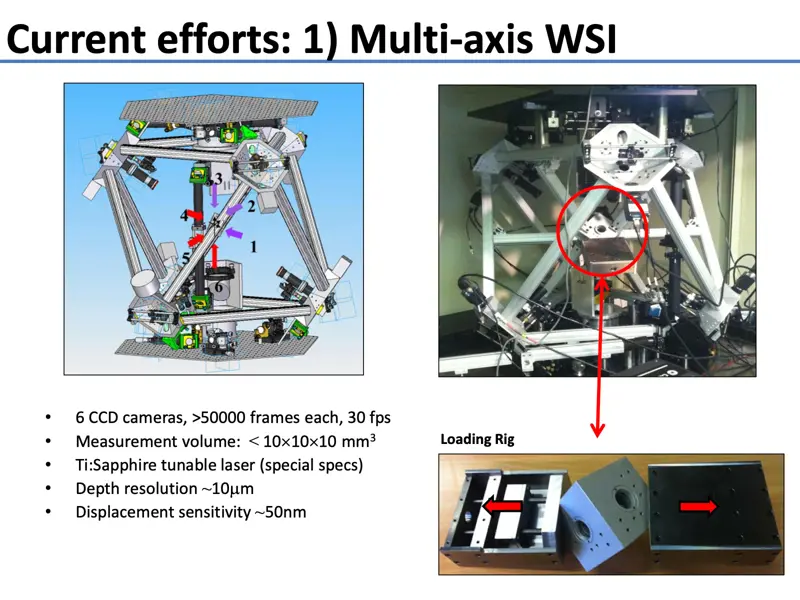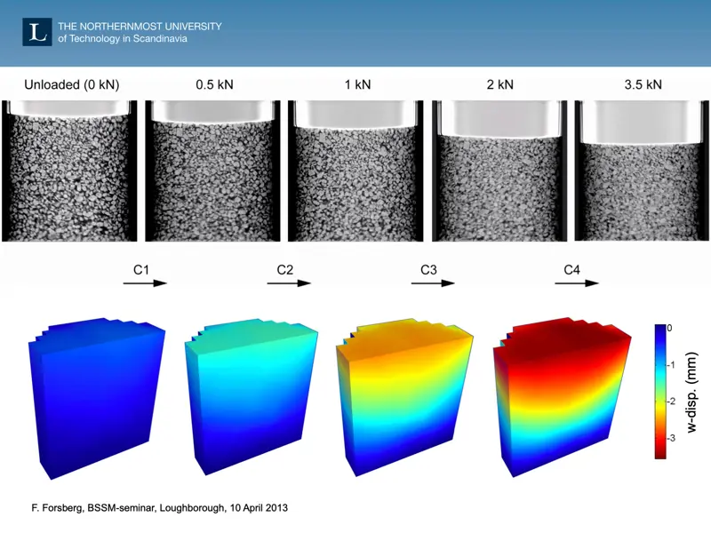 Applications include damage detection, 3D volume deformation, identification of constitutive parameters, evolution of micro and macro cracks in metals and composites, imaging of microstructural features in metallic or polymeric foams and general studies of mechanical phenomena that cannot be described solely based on surface measurements. These capabilities provide unique information to optimize the design of advanced structural component and advance our understanding of complex material behaviour.