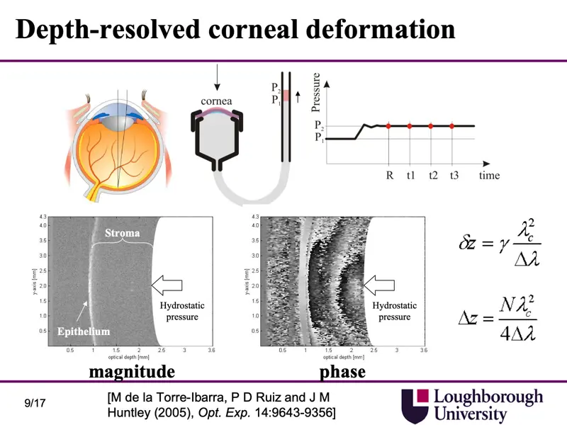 Phase-contrast optical metrology for depth-resolved corneal deformation measurements