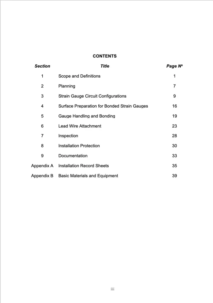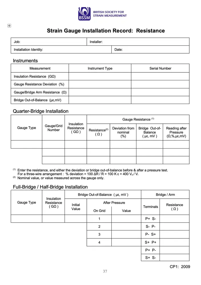 The Code of Practice provides best practice guidelines for the installation of electrical resistance strain gauges. Strain gauges are usually installed as sensing elements in transducers, or for the purpose of acquiring strain data for stress analysis. BSSM believes that it is of benefit to users to have a Code of Practice for strain gauge installation which is universally agreed.